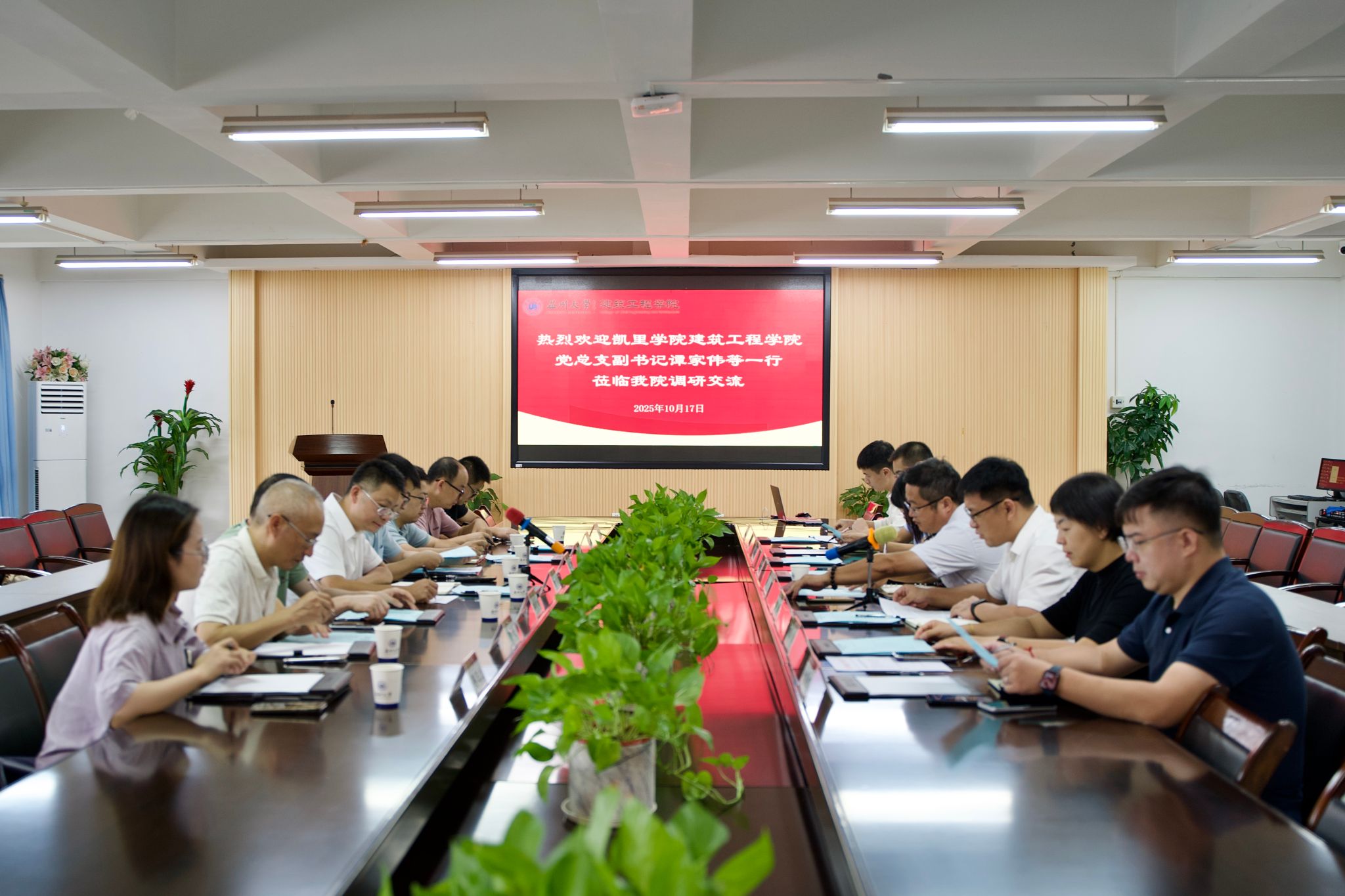 随后,双方围绕党建、教学、科研与人才培养等核心话题展开深入交流。彼此分享了在推动党建与业务深度融合、优化学科专业布局方面的经验与心得,并重点探讨了“十四五”期间建筑类专业的顶层设计与特色发展路径。在合作展望上,双方就土木工程学科的硕士点培育、研究生联合培养、团队共享及科研合作等可行性进行了建设性探讨。公司还介绍了在系统性考研支持方面的举措及升学率的提升成效。