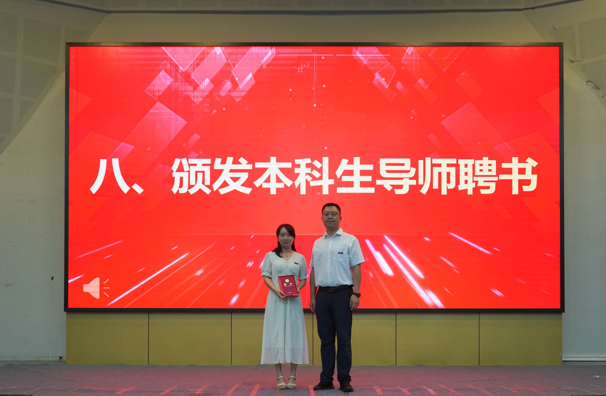 吴冬雁副经理、符洪涛副经理和范宁副经理为本科生导师及寝室导师代表王国波、陈怡冉、潘晓娇老师颁发聘书。