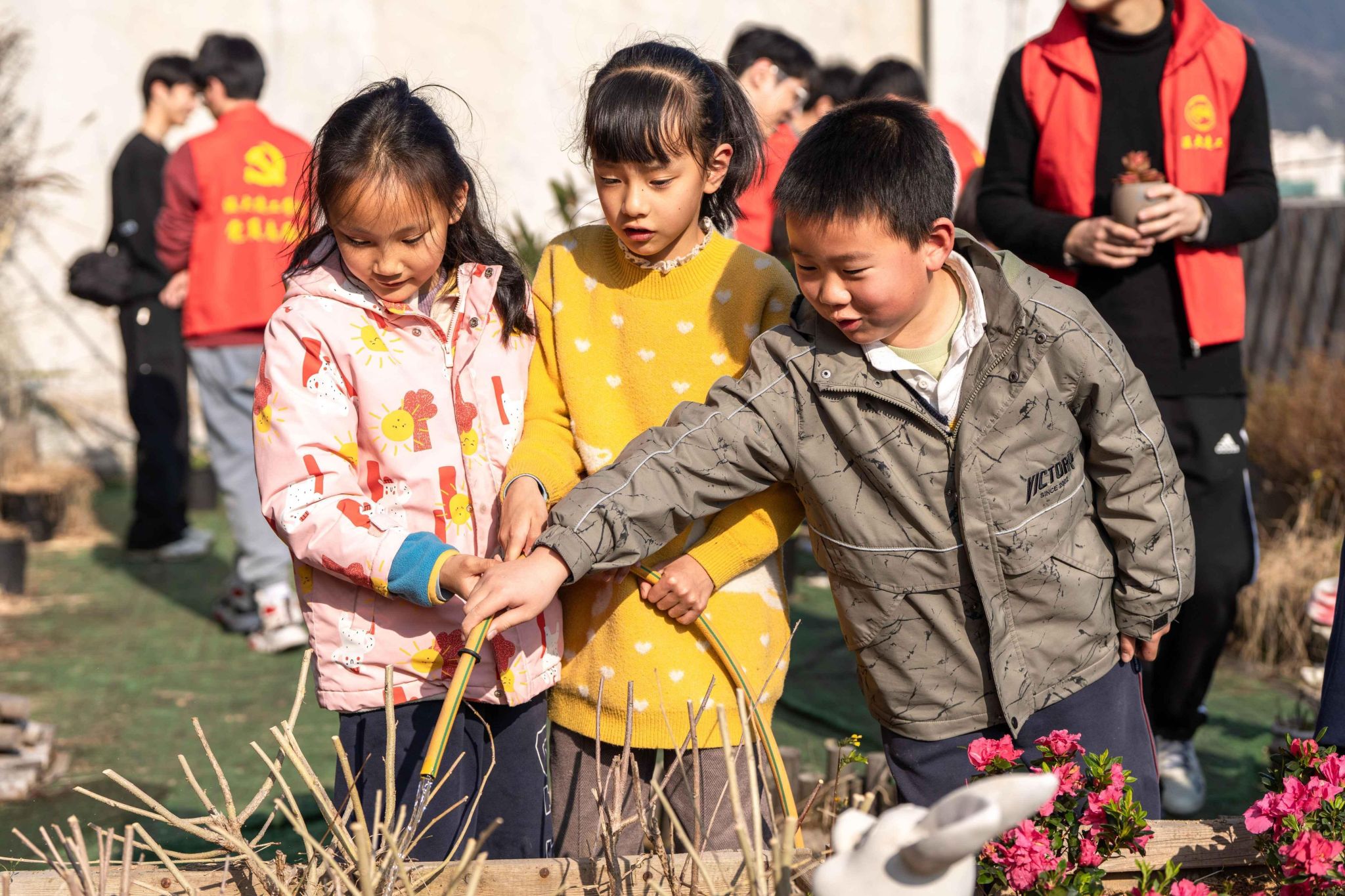 太阳集团tyc4633的志愿者们为小朋友们介绍了不同绿植的特点,共同完成了绿植栽种活动,为今年的春天栽下了新的希望。