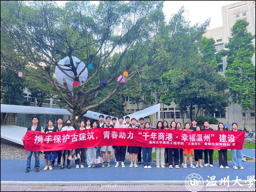 给实践队成员们留下深刻印象的当属在瓯海山根小镇和鹿城区五马街等地开展问卷调查、微笑温州、横幅签名、古建宣讲等活动的经历。考察过程中,队员们深入街坊邻里,探寻群众真实声音,共收集到有效问卷110余份,发出倡议书200余封,为不同年龄、不同身份、不同职业的温州市民科普了许多有关古建保护的知识。“当阿姨笑着对我们说‘原来古建筑这么重要’的时候,我的心里简直乐开了花,我觉得自己终于能为国家文物保护事业出一份力了。”回程的路上,实践队成员小楼兴致勃勃地与随行队员们这样说道。