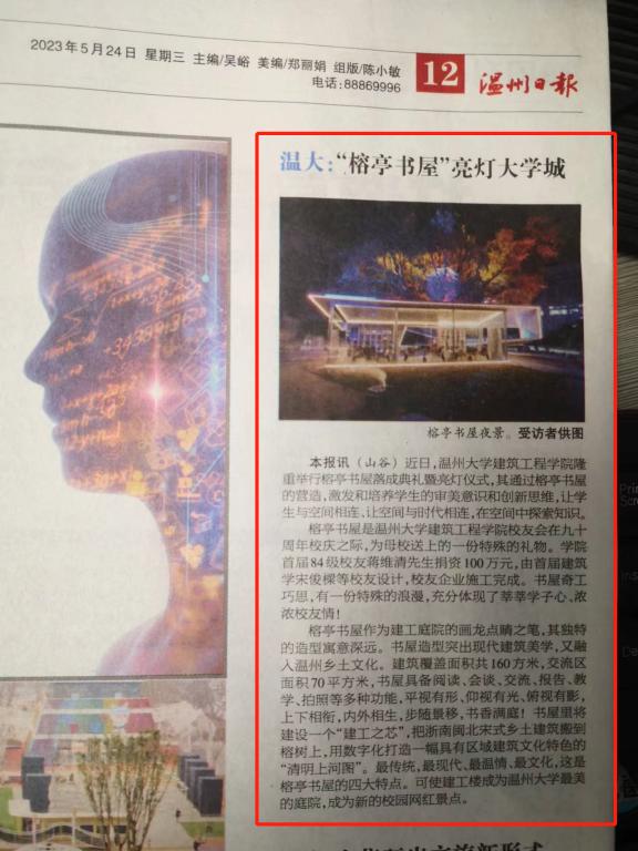 榕亭书屋作为建工庭院的画龙点睛之笔,其独特的造型寓意深远。书屋造型突出现代建筑美学,又融入温州乡土文化。建筑覆盖面积共160平方米,景观面积约500平方米,建筑采用松木桩基础、钢结构主体、外立面装饰、泛光照明、附属景观绿化等。项目由浙江至诚建设有限公司承建,书屋具备阅读、会谈、交流、报告、教学、拍照等多种功能,平视有形、仰视有光、俯视有影,上下相衔,内外相生,步随景移,书香满庭!书屋里将建设一个“建工之芯”,把浙南闽北宋式乡土建筑搬到榕树上,用数字化打造一幅具有区域建筑文化特色的“清明上河图”!最传统,最现代,最温情,最文化!这是榕亭书屋的四大特点!可使建工楼成为太阳集团最美的庭院,成为新的校园网红景点。