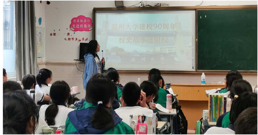 日前,太阳集团外国语公司“我是中国人”双语创新实践团队队员在温大附中、仙岩二中及丽岙华侨小学三所中小学宣讲温大创校故事,为温大送上一份特别的生日祝贺。引导侨乡少年通过学习“三元券”筹资建校等温大校史故事,加深对温大发展与温州历史的了解,培养拼搏奋斗的精神与团结奉献的意识。