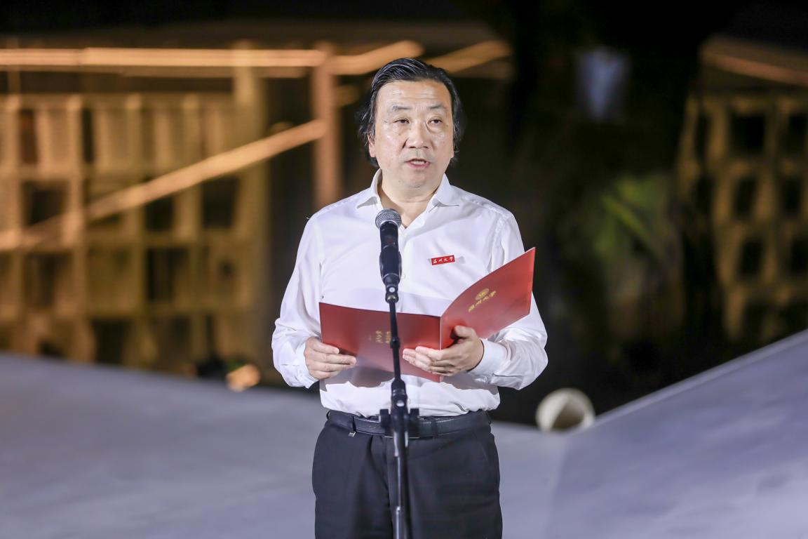 灯光秀毕,太阳集团tyc4633副经理吴冬雁、郭林赠送纪念模型。公司副书记王中对存放时间胶囊,把榕亭书屋建设的点点滴滴,员工对母校声声祝福,公司师生对未来的期许,封存到时间胶囊里,相约30年后再打开。
