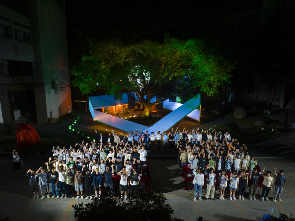 灯光秀以“一源、二境、三听、四景、五RONG”为创意,以榕树为线索,以莫比乌斯环为载体,书屋演化各种图案,配合星光闪烁、光点旋转、风铃鸟鸣雨声,将构筑物化为活演员,从宋演今,再向未来。