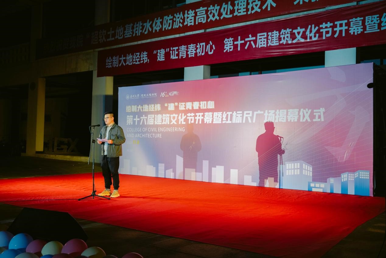 党委书记刘青松致辞中表示,“建筑文化节”是公司重点打造的校园文化品牌,通过开展丰富多彩的建筑文化活动,培养老员工的创新思维和实际动手能力,促进同学们德智体美全面发展;“红标尺广场”揭幕是继“红标尺长廊”后的又一公司力作,“红标尺”作为公司党委近年来着力打造的党建文化品牌,“标尺”作为建筑行业最基础的测量工具,公司希望同学们人生有尺、做人有度,包含了对同学们的期望;时光慢递!给四年、五年后的自己写一封信,是公司的传统项目,小小的鸟巢承载了同学们对未来自己的真挚祝愿,期盼在大学时光里起航新的梦想,扬帆新的人生。