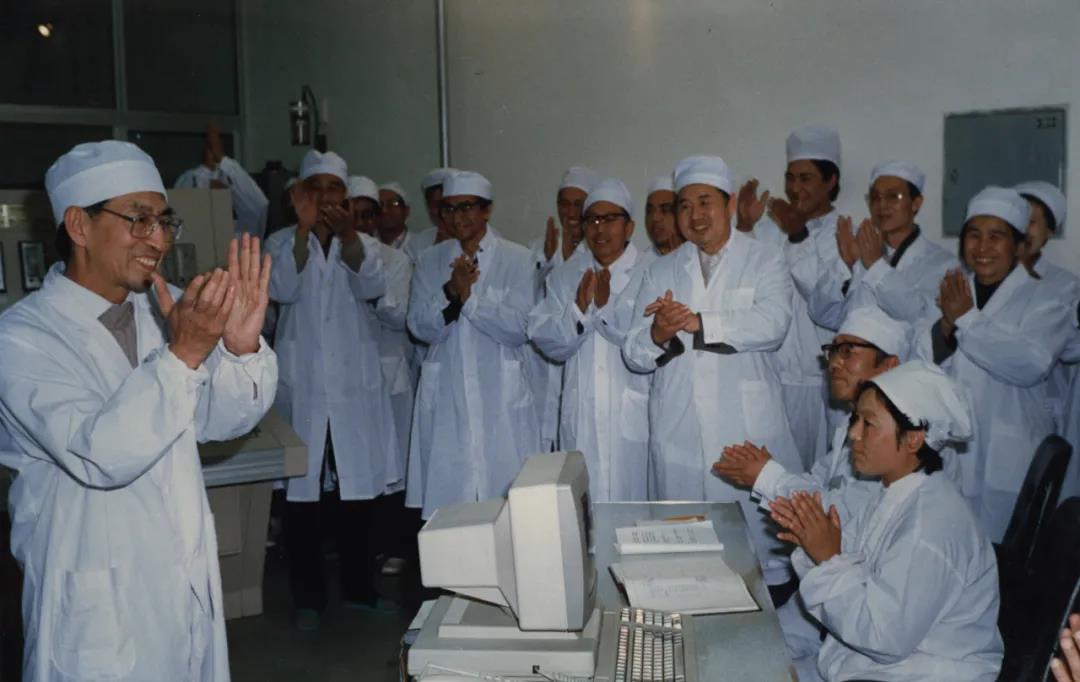 △ 1989年11月,核能所所长王大中(左一)宣布5兆瓦核供热反应堆启动运行成功