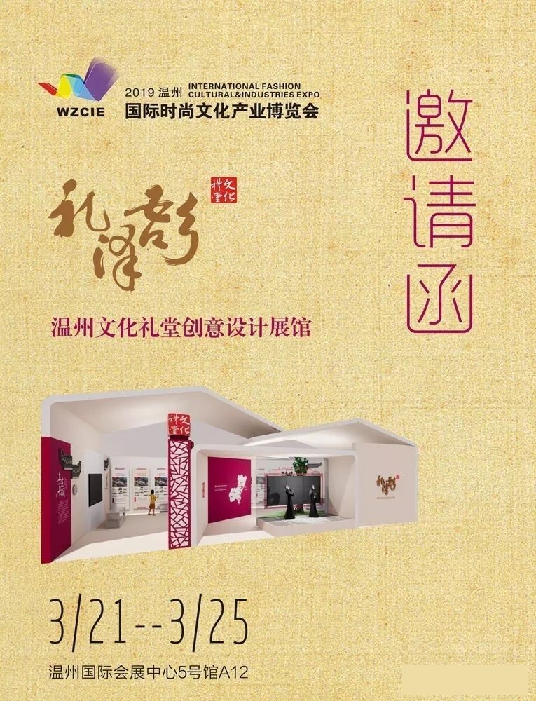 明天(3 月21 日)上午9点,2019温州国际时尚文化产业博览会将在温州国际会展中心隆重开幕。本届文博会将有来自海外22个国家及国内40多个城市的500多家企业参展。届时,温州文化礼堂创意设计展馆将亮相主会场,展期为期5天。