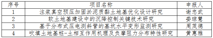 根据浙江省软弱土地基与海涂围垦工程技术重点实验室申请书、实验室开放基金管理办法有关规定,经专家评审,浙江省软弱土地基与海涂围垦工程技术重点实验室决定批准以下项目立项。请申报人填写《浙江省软弱土地基与海涂围垦工程技术重点实验室开放课题计划书》,于评审结果通告发布之日起10日(即2025年4月11日)内,提交计划书和合作协议,电子版发送至邮箱413305956@qq.com, 纸质版(签字盖章)各一式两份。