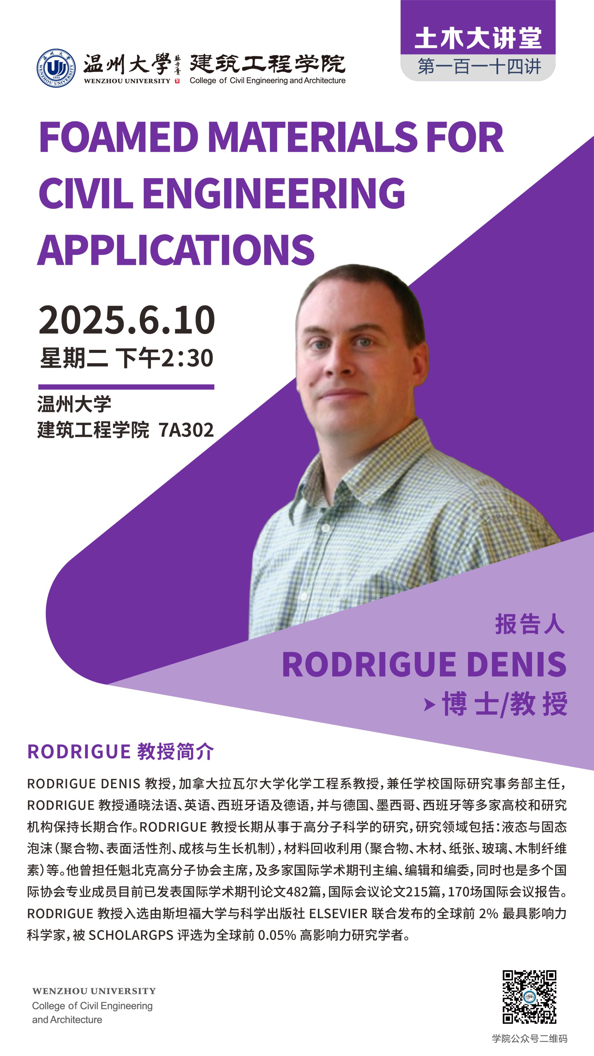 学术讲座预告:FOAMED MATERIALS FOR CIVIL ENGINEERING APPLICATIONS
