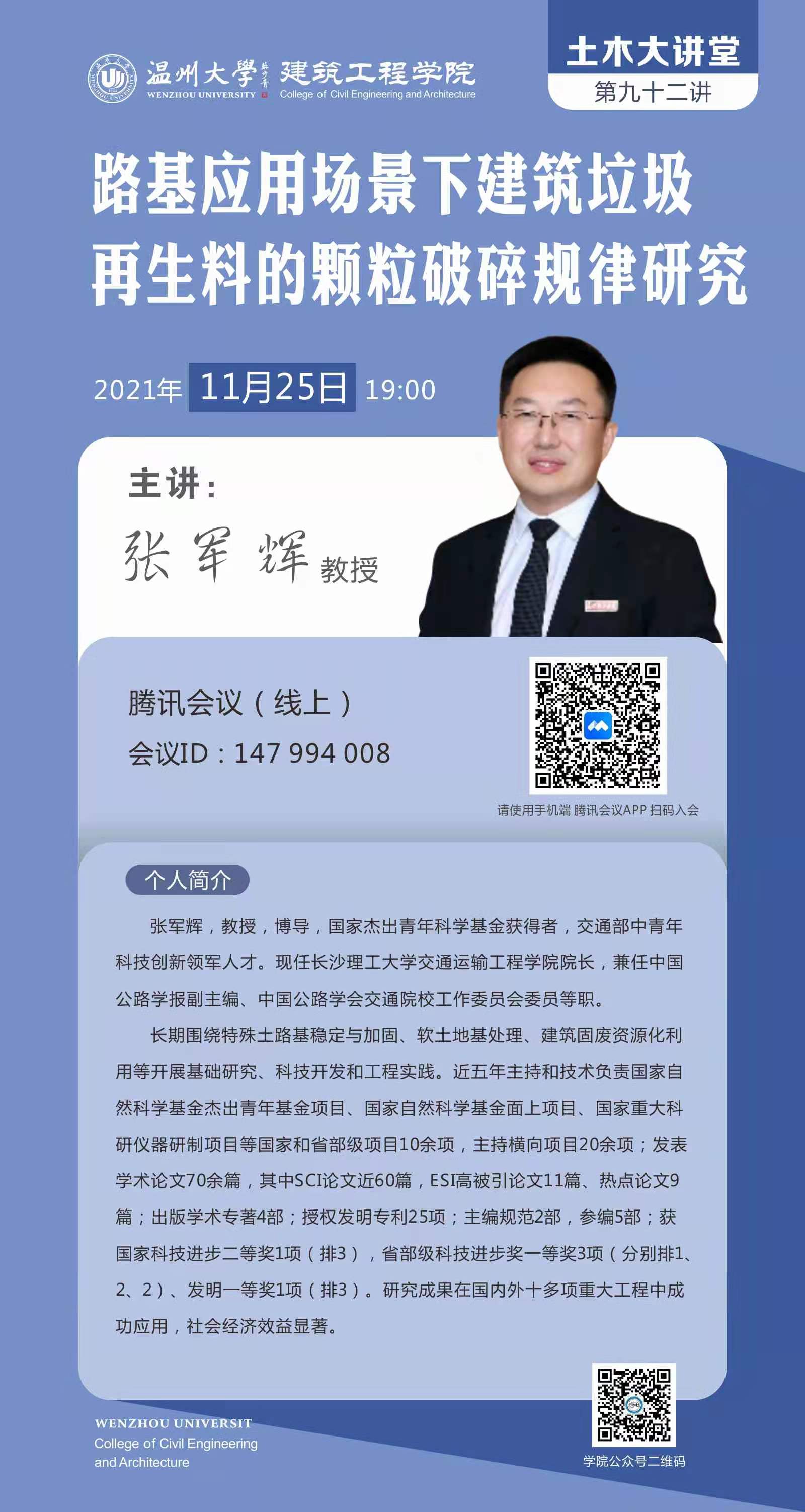 学术讲座预告:路基应用场景下建筑垃圾再生料的颗粒破碎规律研究