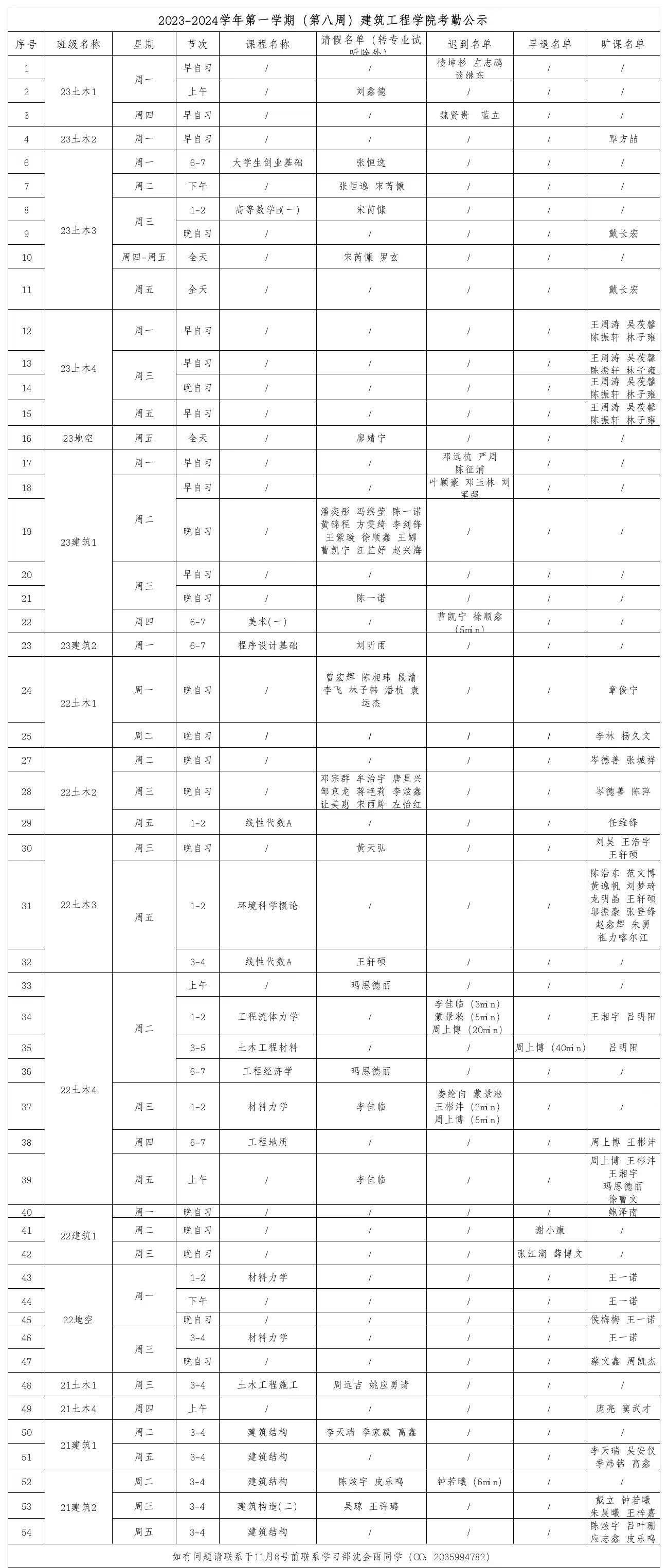 2023-2024学年第一学期(第八周)太阳集团tyc4633考勤公示