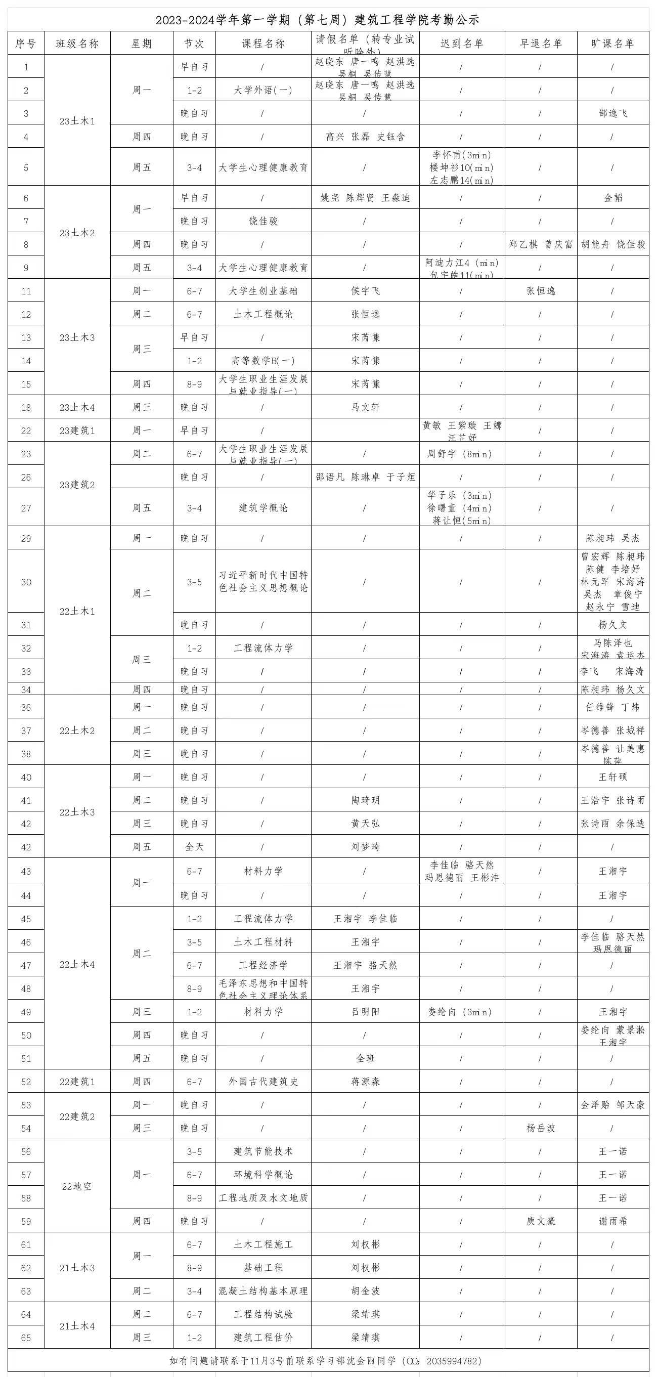 2023-2024学年第一学期(第七周)太阳集团tyc4633考勤公示