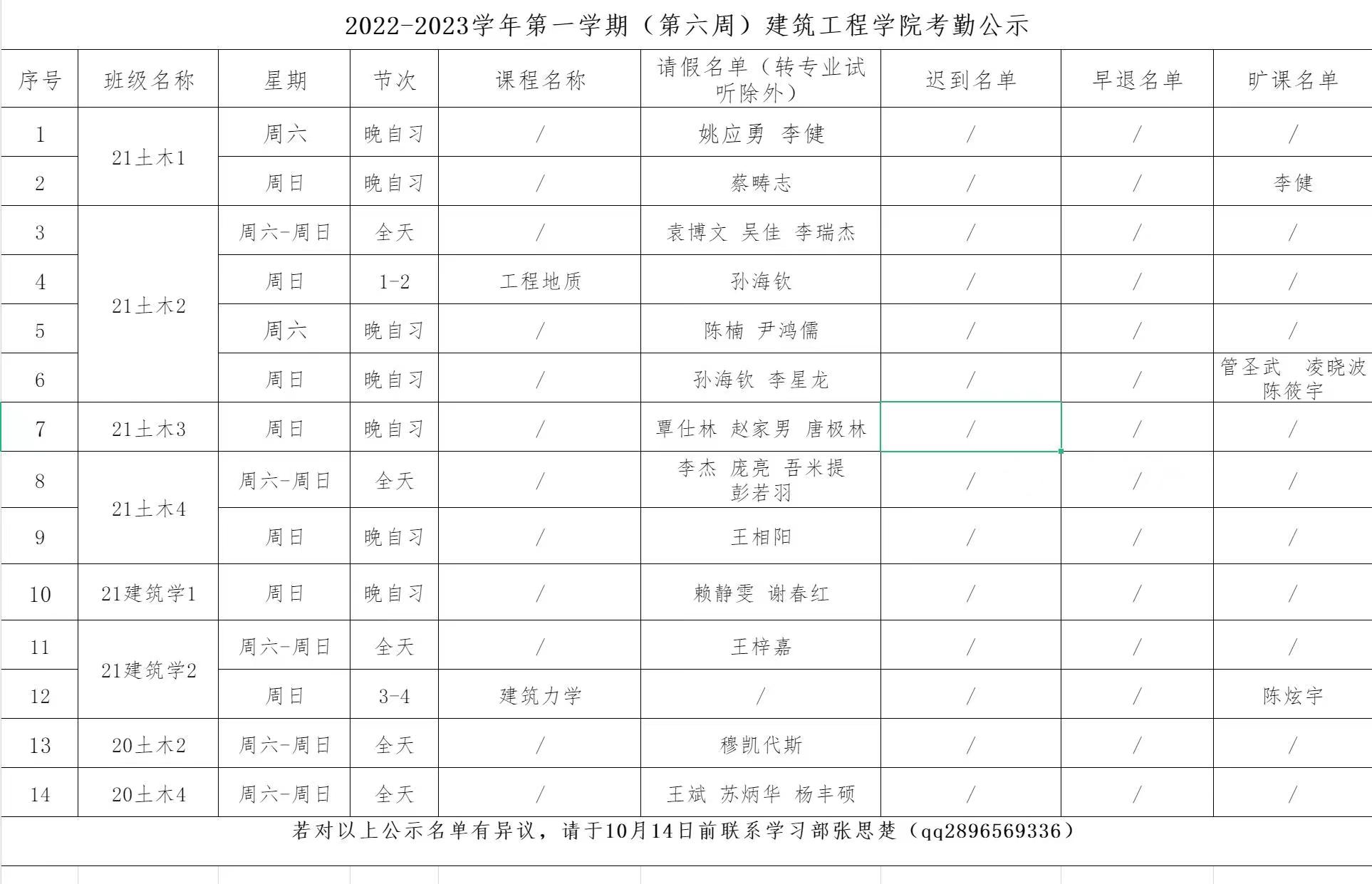2022-2023学年第一学期(第六周)太阳集团tyc4633考勤公示