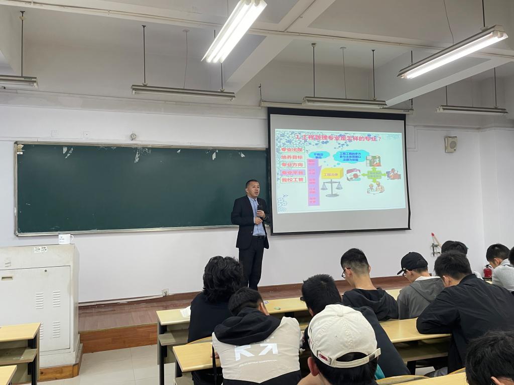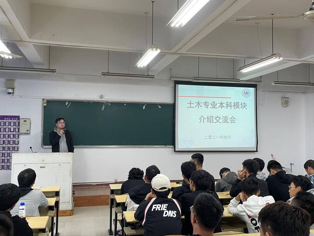 2021年10月20日下午13:30,太阳集团tyc4633在南7-D302教室召开2020级土木工程专业模块方向选择宣讲会。20级土木工程专业全体同学参加了本次会议。会议由叶昌鹏老师主持,叶老师首先介绍了本次宣讲会的流程和志愿表填报注意事项等。然后,孙富学、潘安平和叶昌鹏老师分别在PPT上为我们详细介绍了桥梁与隧道、工程管理、建筑工程三个专业方向的基本情况、社会声誉、影响力以及未来发展趋势与就业前景等方面。