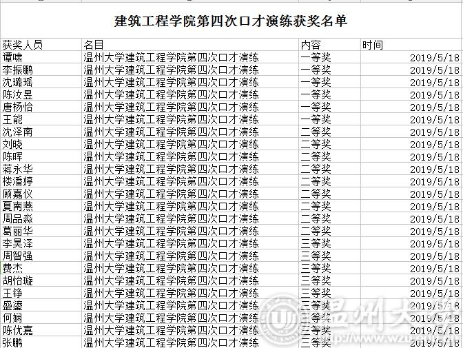 太阳集团tyc46332018-2019学年第二学期第四次口才演练获奖名单
