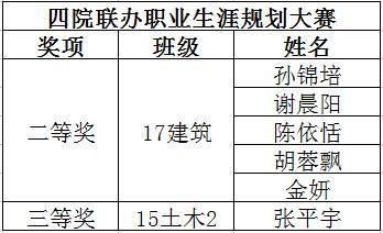 四院联办职业生涯规划大赛获奖名单