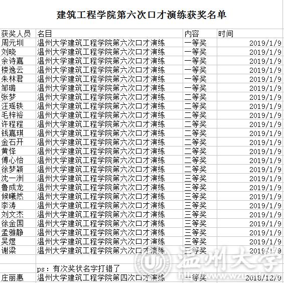 太阳集团tyc46332018-2019学年第一学期第六次口才演练获奖名单