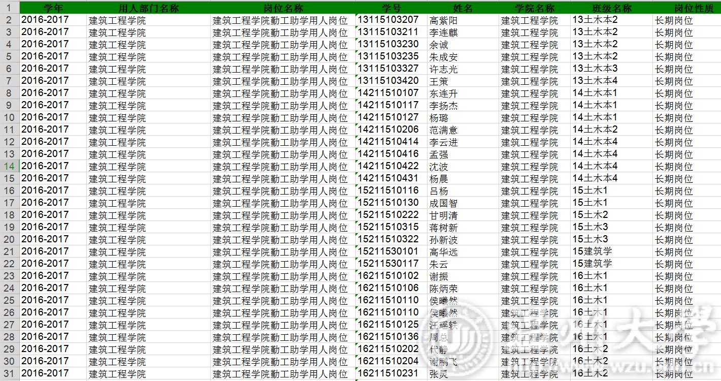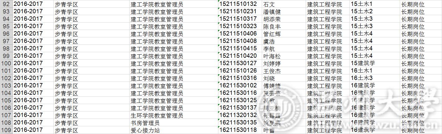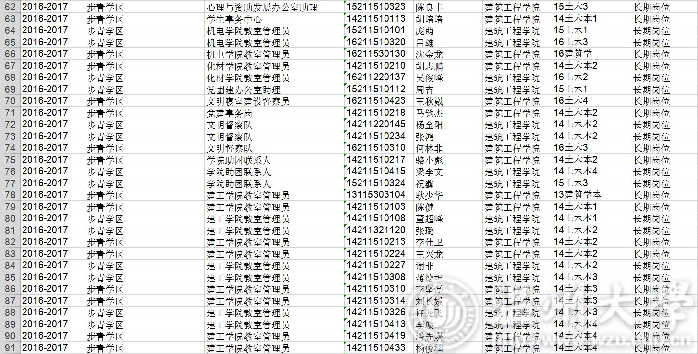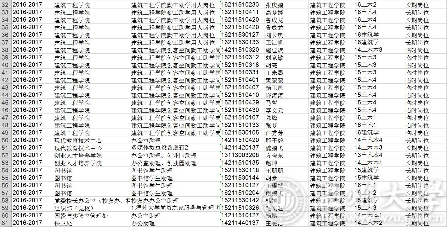 16-17学年勤工俭学名单