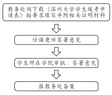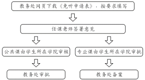 3、如补修课程上课时间有冲突,可申请间断听课(《课程免听申请流程》见附件2)。如先修课程跟重修课程上课时间有冲突,不能申请先修该门课程。考试时间有冲突可申请缓考(《课程缓考申请流程》见附件3)。为保证学习效果,每学期修读课程总学分原则上不超过20学分。