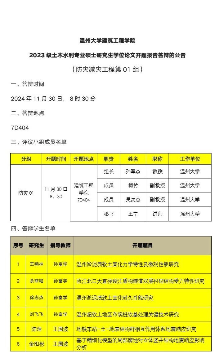 2023级专硕研究生学位论文开题报告答辩公示(三)