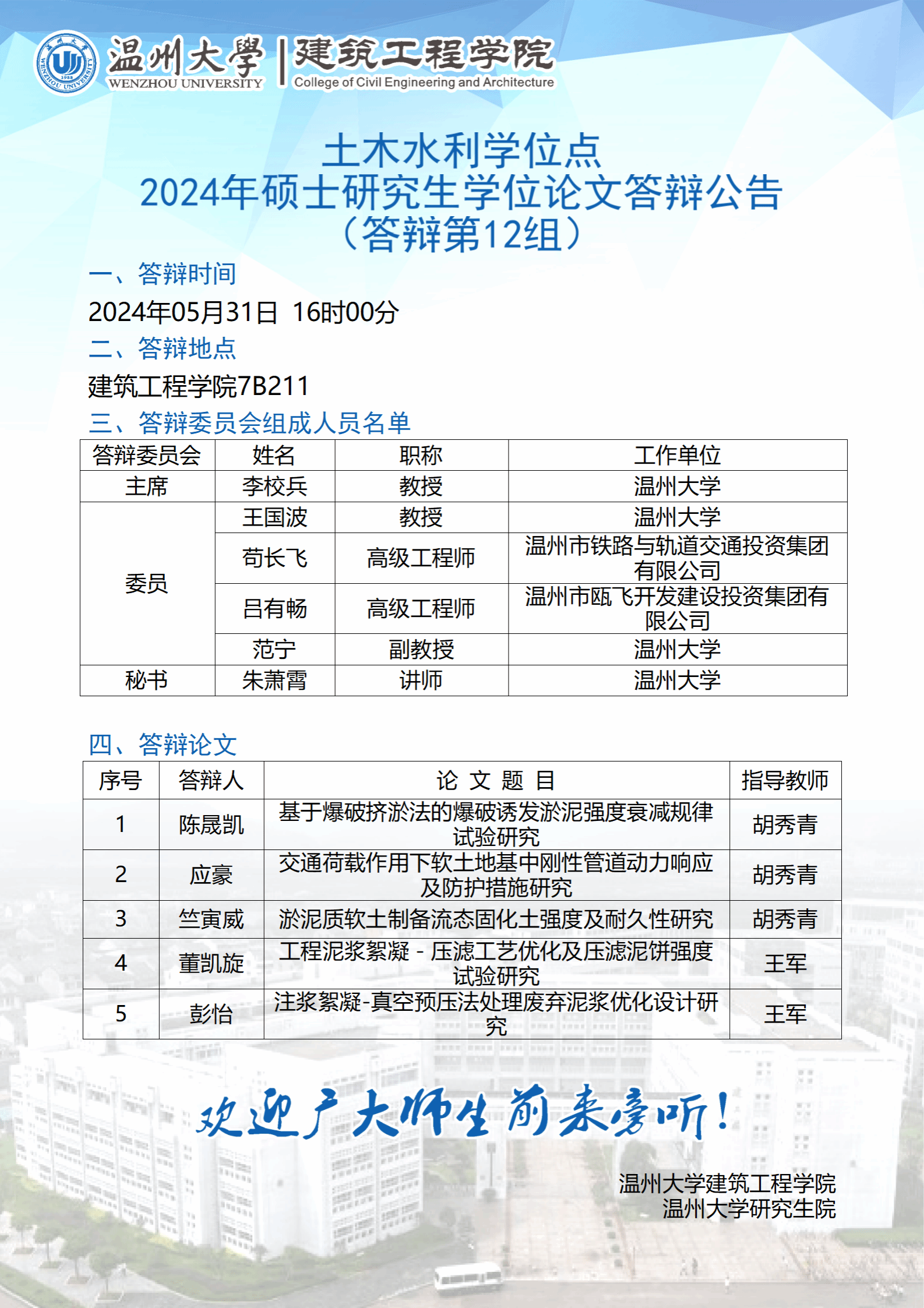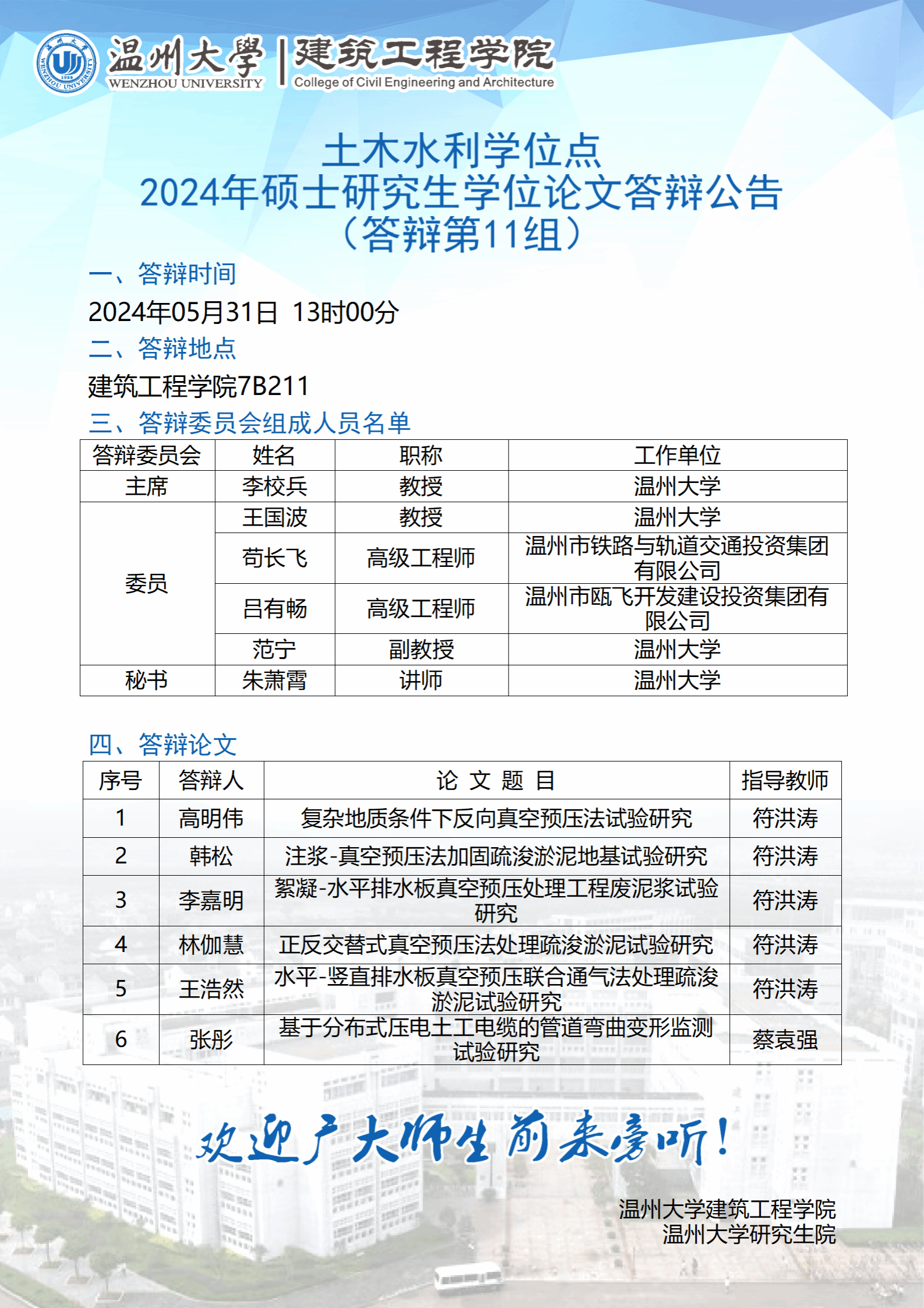 太阳集团tyc4633土木水利学位点2021级硕士研究生学位论文答辩公告(三)