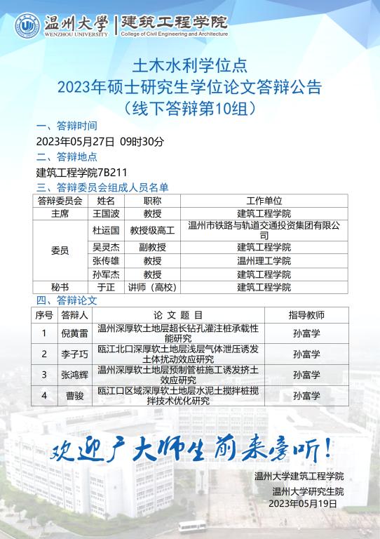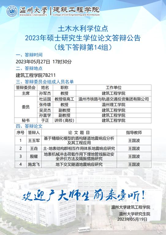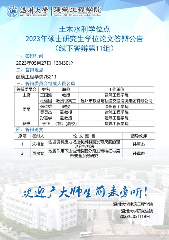 太阳集团tyc4633土木水利学位点2020级硕士研究生学位论文答辩公告(三)