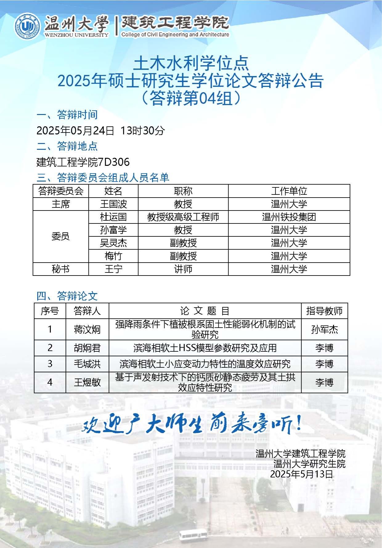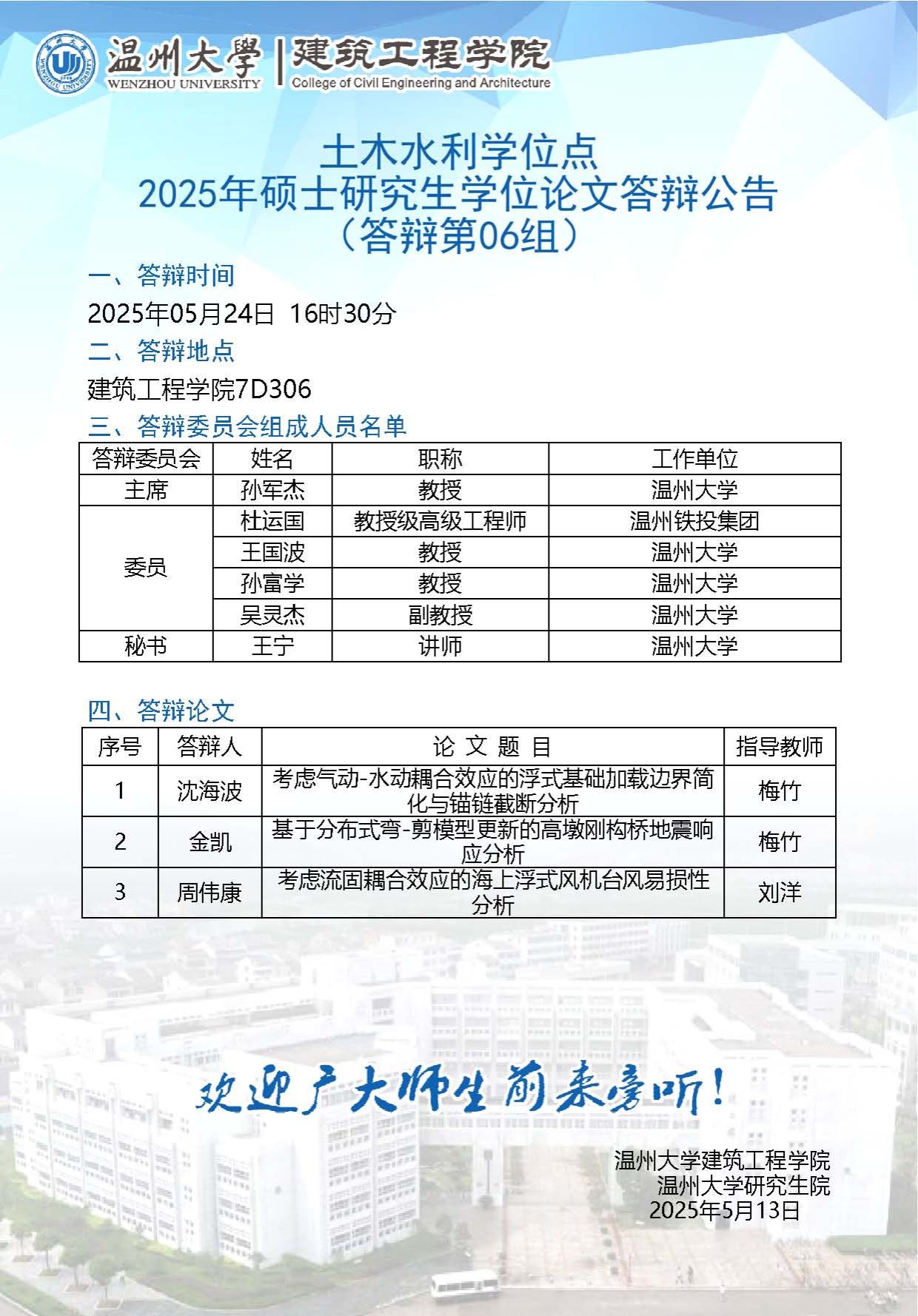 太阳集团tyc46332025届(六月)硕士研究生学位论文答辩公告(一)