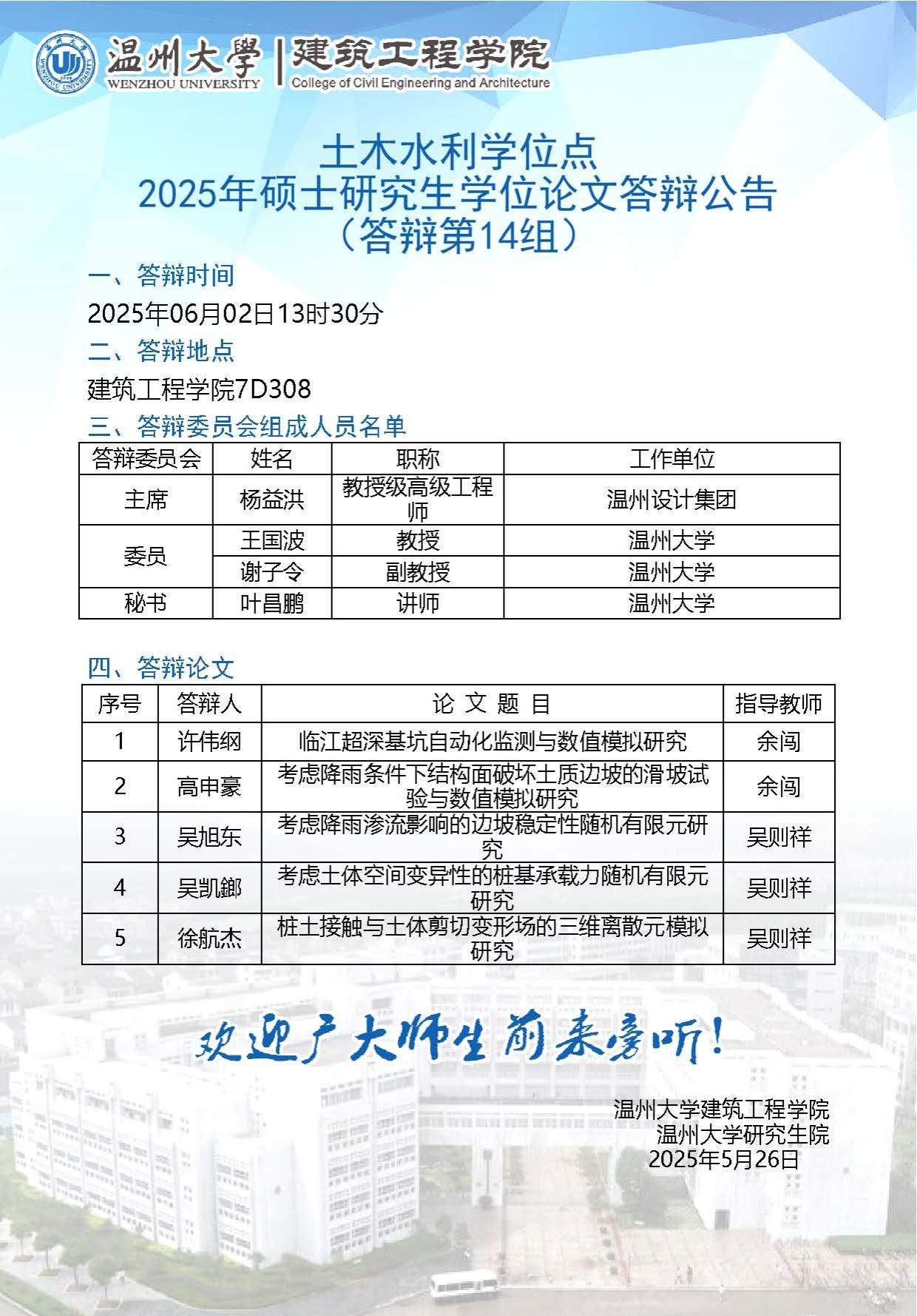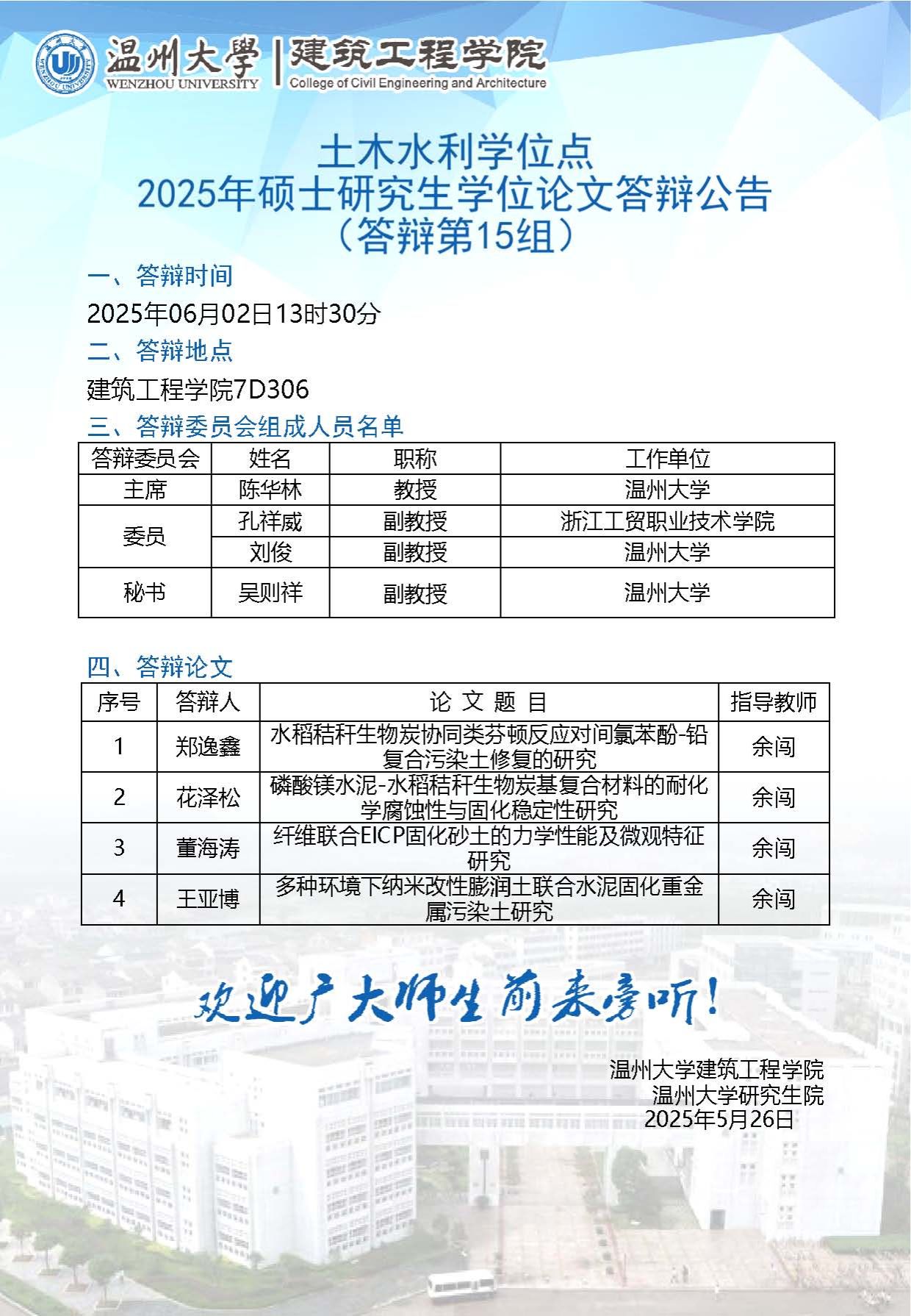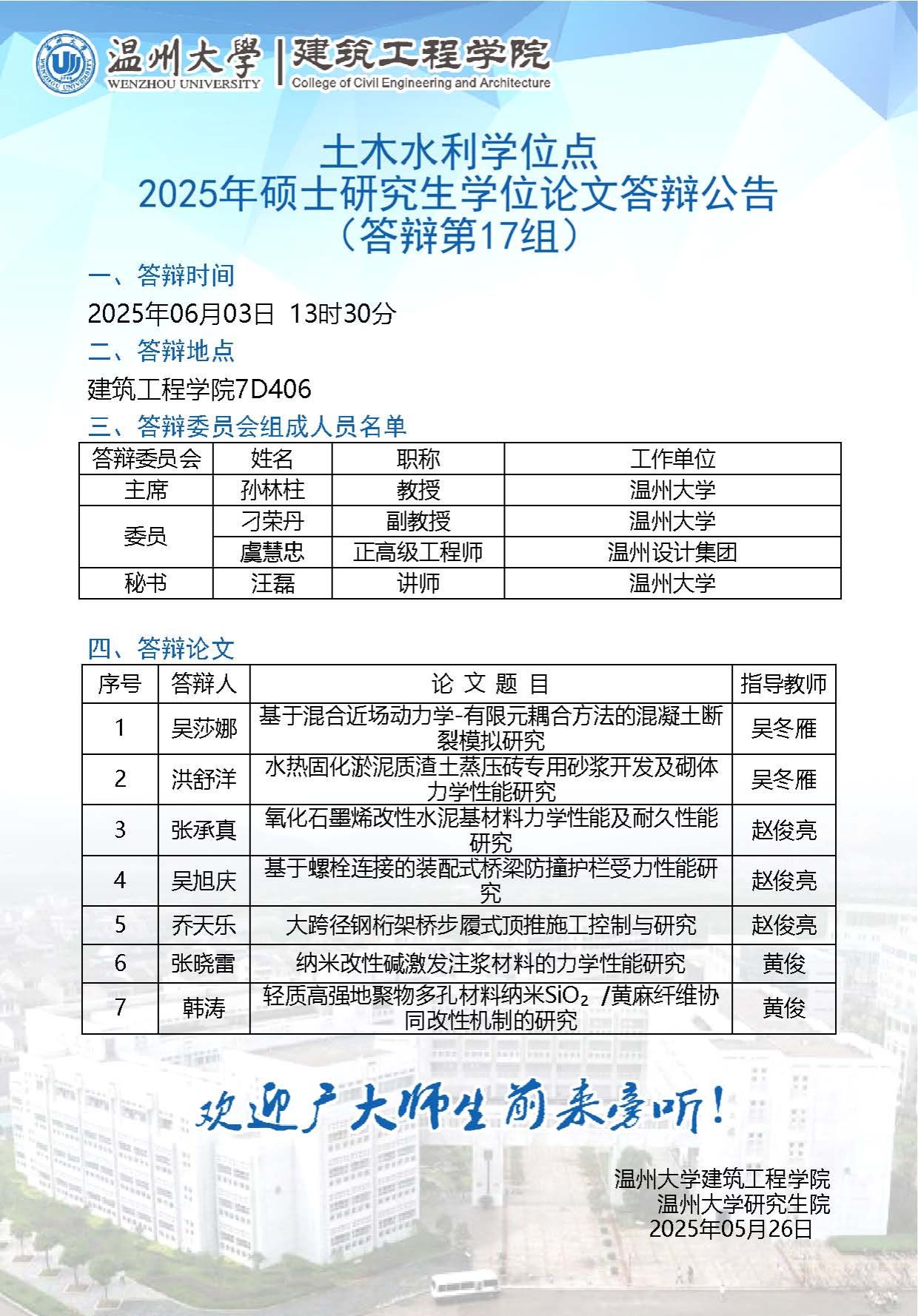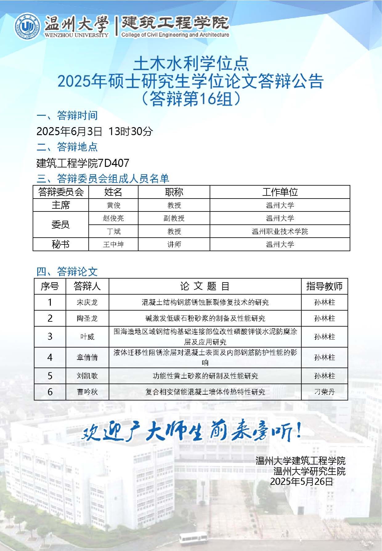 太阳集团tyc46332025届(六月)硕士研究生学位论文答辩公告(六)