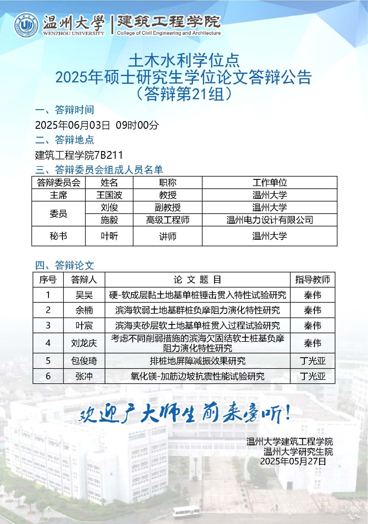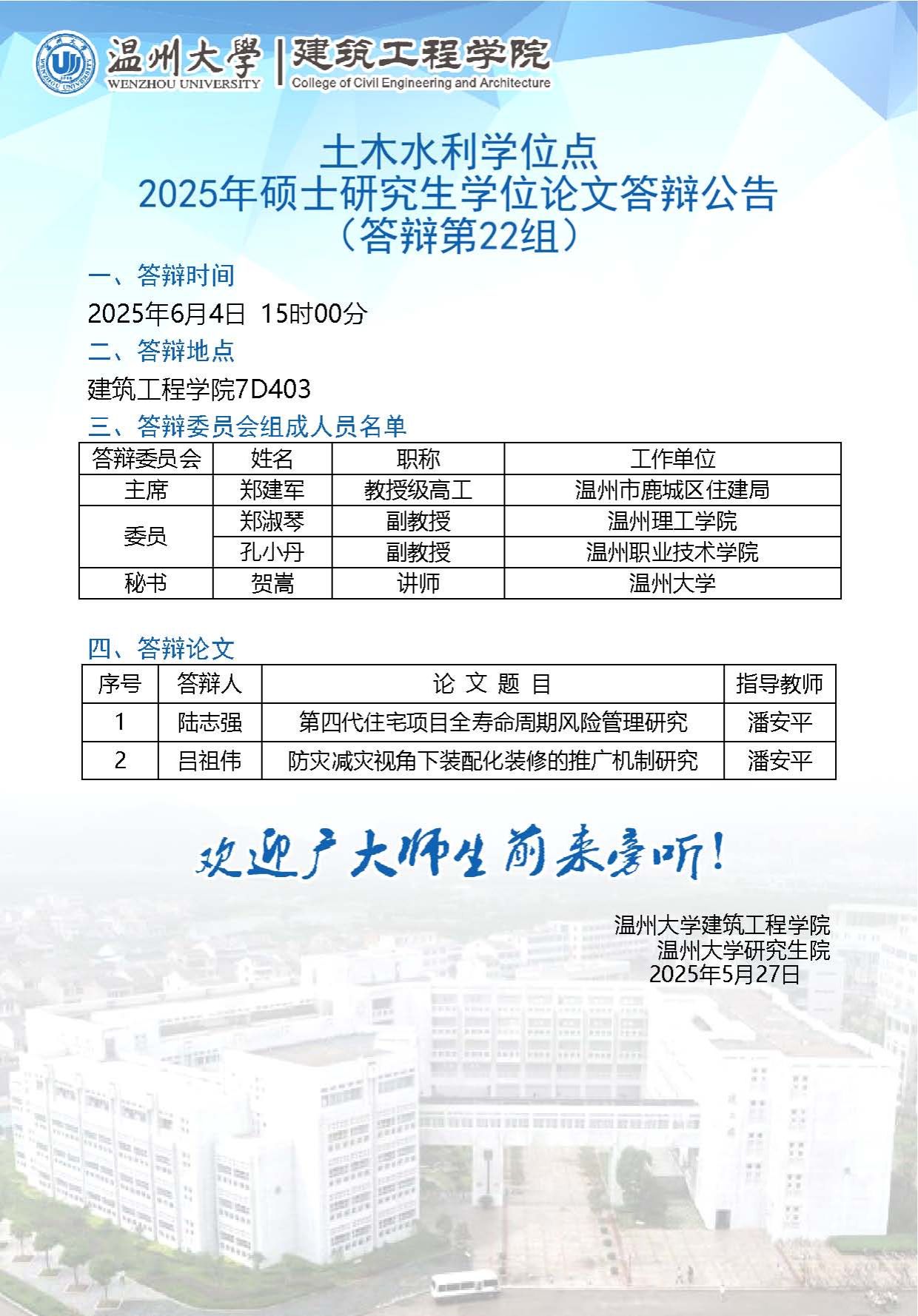 太阳集团tyc46332025届(六月)硕士研究生学位论文答辩公告(八)