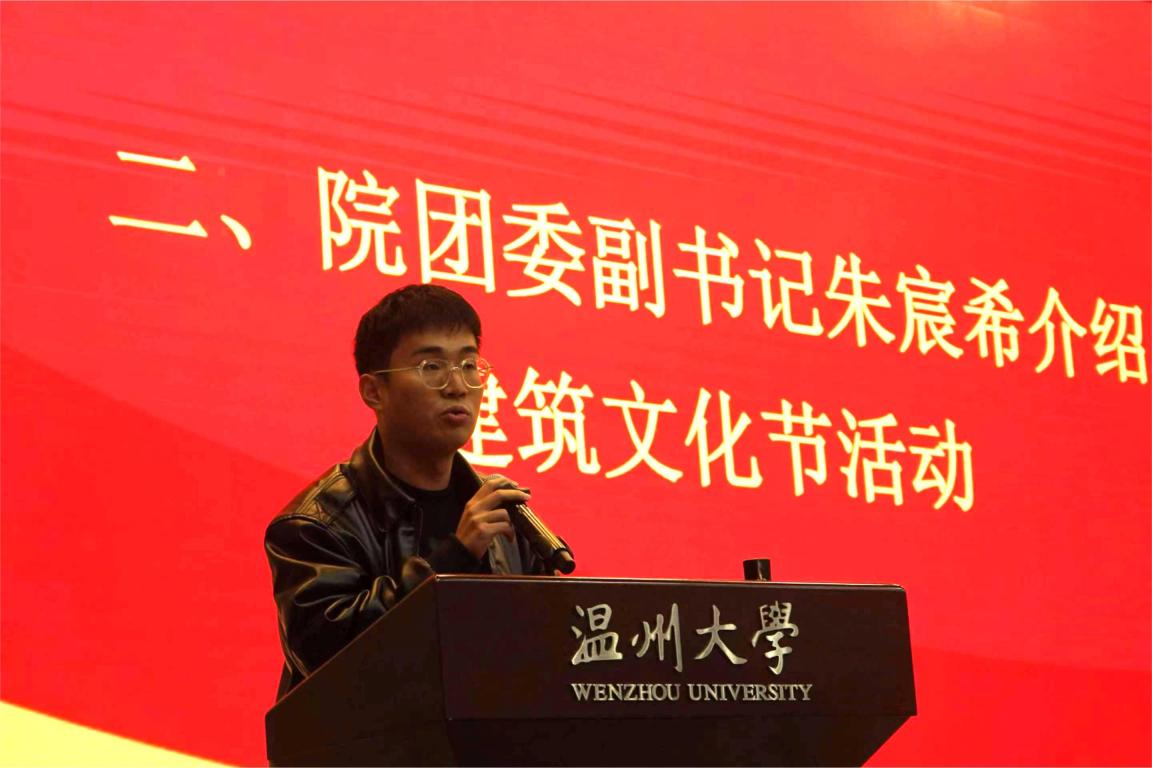 团委副书记朱宸希介绍建筑文化节活动安排。他指出,本届建筑文节突出学术性、专业性、健康性和示范性,内容包括“学术氛围,开拓思维”“文武双全,德才兼备”“文体盛会,青春律动”“榜样力量,筑力远航”“贴近职业,创意无限”等五大板块内容。活动历时近一年,通过丰富多样的各类活动,优化院风学风,繁荣校园文化,培育公司精神,滋养师生心灵,引领社会风尚。