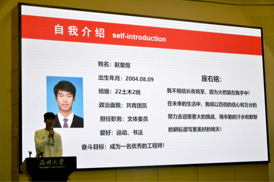 竞选“学习标兵”的学长学姐们不仅给大一新生们树立了一个热爱学习、献身志愿,积极参加各项学术比赛的优秀标兵形象,也让他们进一步明确的努力的方向。