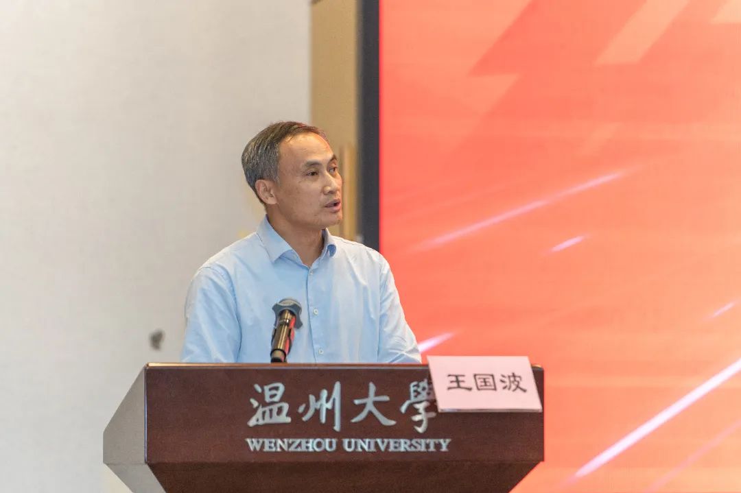 教师代表王国波教授发言。他围绕参与、珍惜、勤奋、学习、规划、专业等6个关键词,向同学们分享大学求学之道。他鼓励同学们勤勉且奋斗,守纪且自律,拼搏且超越,并祝愿同学们开启新篇章,精彩且有收获,无愧于自己宝贵的青春、无愧于父母的养育、无愧于公司的培养、无愧于社会的召唤。