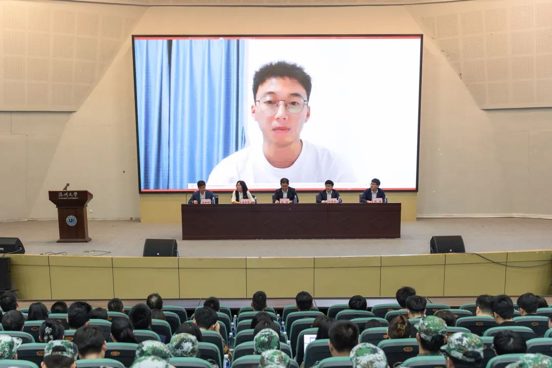 员工代表发言。公司2020届土木工程专业本科毕业生、2023届土木水利毕业研究生、武汉大学在读博士朱炜豪员工通过视频,与学弟学妹分享自己在本硕期间学习生活工作中的心得体会,一是要学会学习;二是要学会做人;三是要学会规划;四是要锻炼身体,并勉励同学们志存高远、躬身实践、追求卓越。