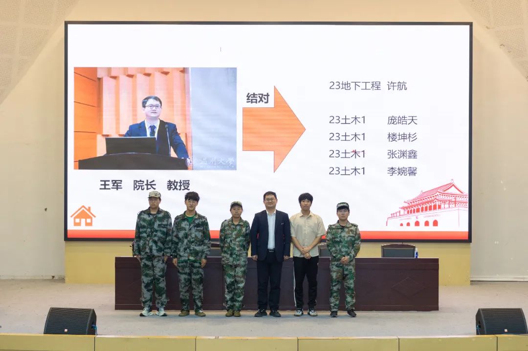 经理王军致辞。他对2023级新生表示热烈的欢迎,围绕公司专业建设、人才培养、科学研究、团队力量等方面简要介绍公司的建设发展情况。他结合新时代建筑、规划、交通、水利行业的发展特点和就业前景,引导同学们思考“要成为什么样的人”,鼓励新生以理想为帆,矢志奋斗。