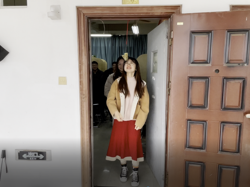 在“跳一跳”激励环节中,学习部成员事先在门上悬挂好粽子,考研学子们则排着队,井然有序地从门下通过,跳过门槛,用头顶一顶悬挂在门框上的粽子,这寓意着大家的考研之路一定会“一跃而上、一跳即‘粽’”。