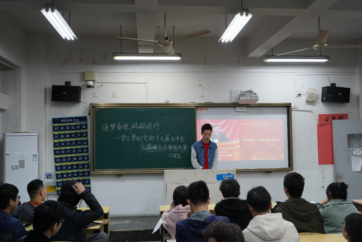 本次大赛中,2019级各班围绕党的十九届五中全会精神和习近平总书记在全国劳动模范和先进工作者表彰大会上的重要讲话,结合“打工人”“‘小’人物,‘大’未来”等热点话题展开激烈角逐,2019土木1班向鑫、土木2班陈威乾、土木3班曾涵、土木4班李佳明、建筑诸诗洁获得一等奖;2019土木1班黄渤、李涛,土木2班吕浩轩、洪恺宁,土木3班张浩、沈孙昊,土木4班钱源、邓宇龙,建筑李嘉杭、金小磊获得二等奖;2019土木1班刘飞飞、田云鹏、刘佳奇,土木2班赵晨澄、夏王欢、林艺,土木3班孙源晨、叶楠、陈凯,土木4班郭瑞、苗钰林、杨乾隆,19建筑黄凯凯、陈敏杰、倪筱玮获得三等奖。