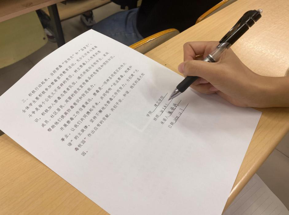 2020年12月7日18:30,公司举行了20级新生《禁毒承诺书》签字活动,20级全体新生参与活动。