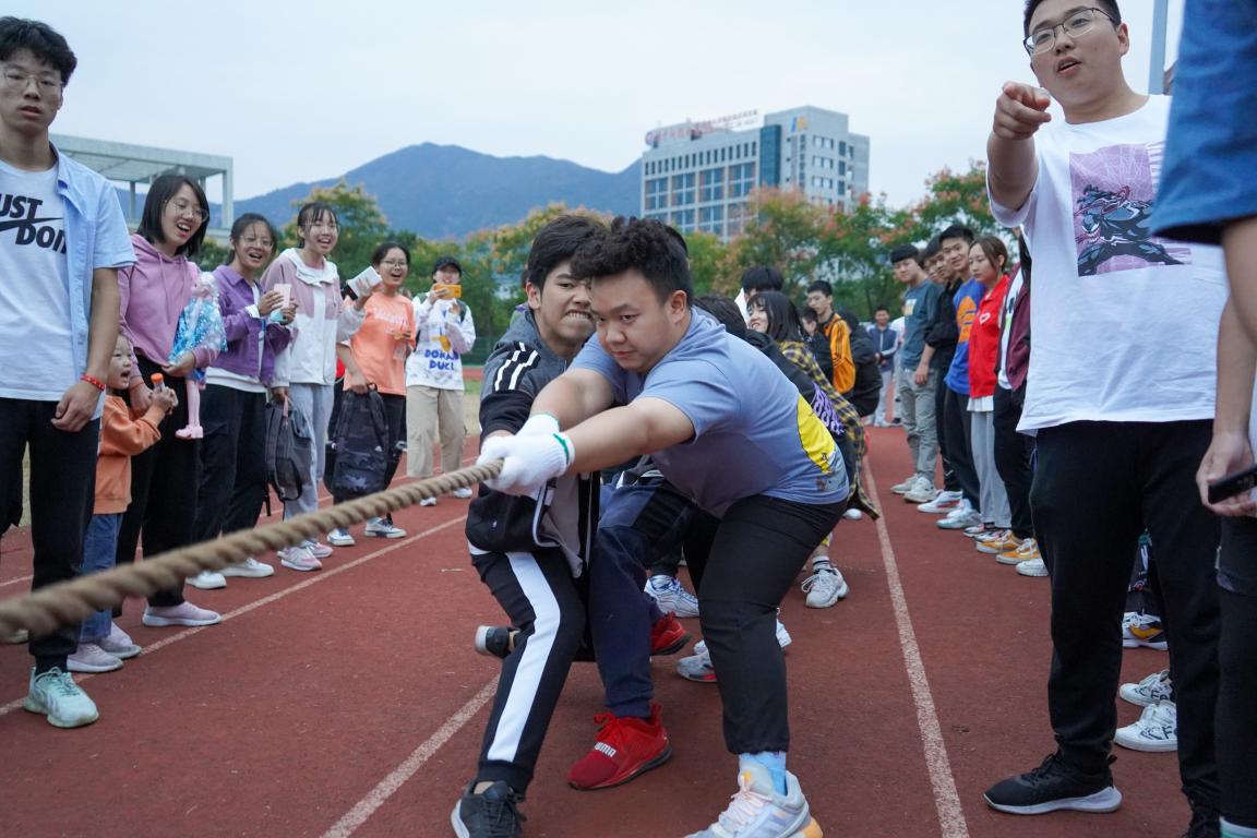 上午的比赛中,短跑运动员们犹如离弦的箭一般在跑道上飞驰,观众席上一阵阵如浪潮般的加油呐喊声是激励他们奋勇向前的动力。田赛运动员们为了得到更好的成绩,拼尽全力,即使失败也毫不气馁,一次又一次地向目标跨出坚定的步伐。下午,在众人瞩目的长跑比赛中,运动员们坚持跑完全程,超越自我,是其意志力的体现,亦是对体育精神的诠释,令人敬佩。随后,趣味运动会拉开了序幕,各个班级的大部分同学都参与其中。在4*100m接力、跳长绳、四人五足、拔河这四个项目中,运动员们拧成一股绳,班级中没有参与的同学都在场边加油鼓劲,使在场的人都感受到了集体的力量。最后,本届运动会在所有团学工作人员的合照后落下了帷幕。