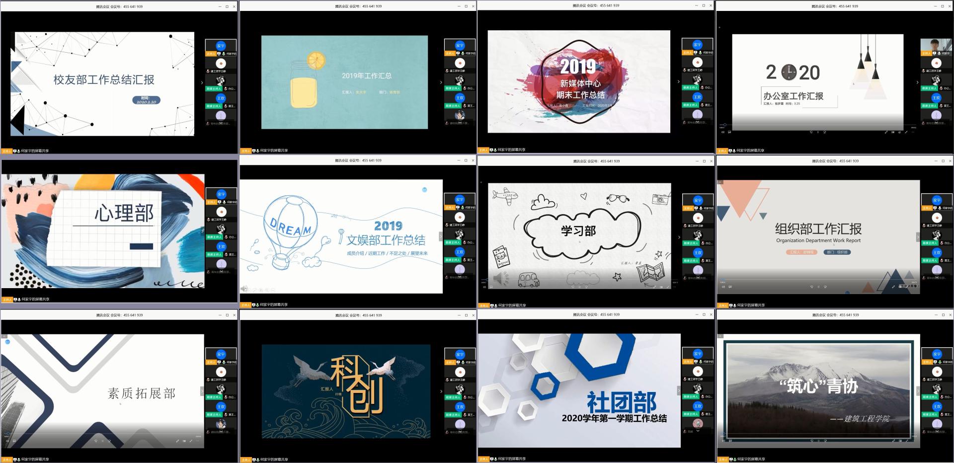 接下来是大会第二项议程:星级部门评审环节。团委·员工会各部门提前录制好汇报视频,通过主持人在线播放展示一学期以来的工作成果。各个部门简单的介绍了自己部门的职能,对一学期的工作进行了总结和展望,他们通过实践发现一些工作中的不足,为下一阶段的工作积累了宝贵经验和探索出更好的改进方法。各部门视频汇报结束后,由参会老师和同学进行线上投票后选出星级部门。