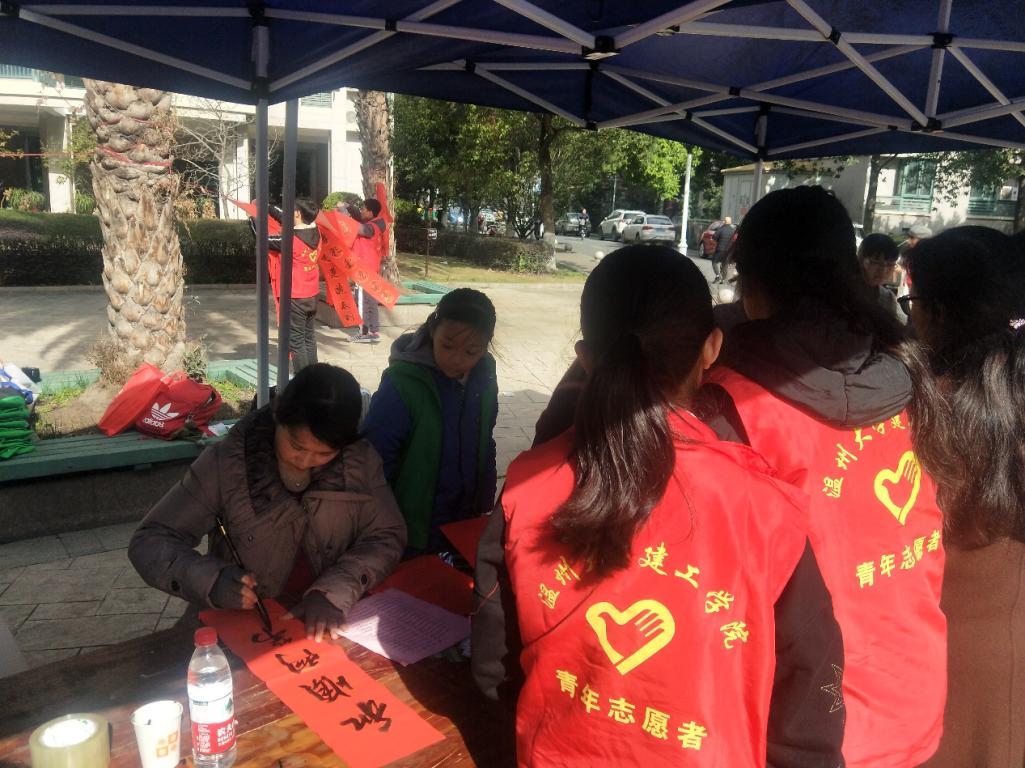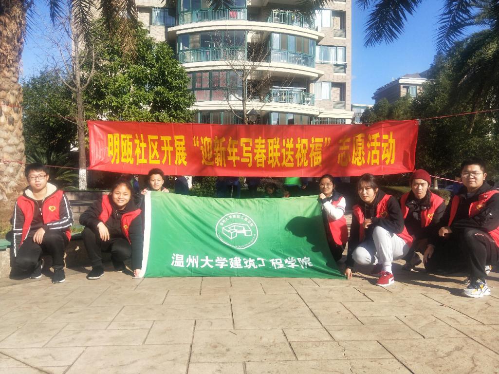 在春节即将到来之际,太阳集团tyc4633青年志愿服务部于2020年1月12日上午组织志愿者前往明瓯社区开展暖冬行动,以写春联送春联的形式为他们送去春节的祝福。