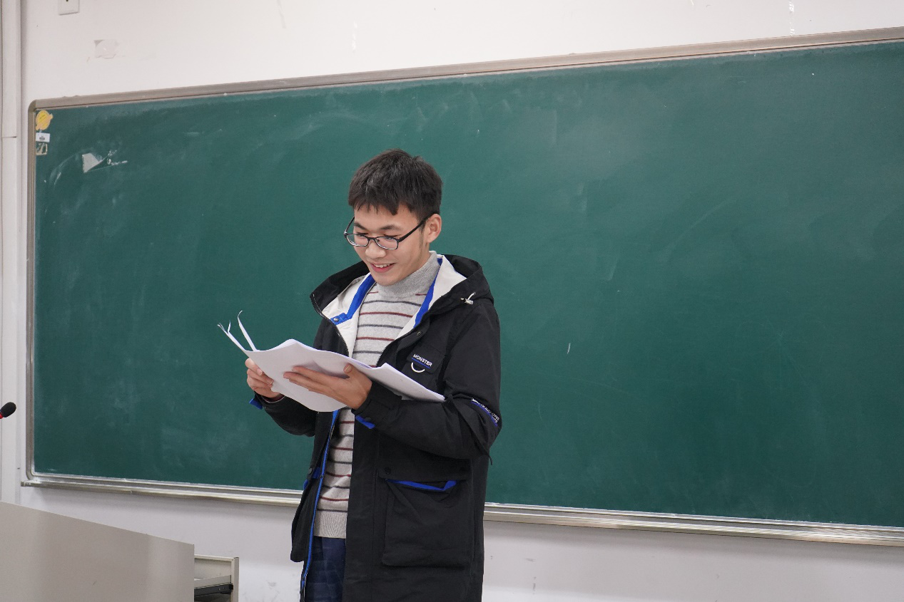 随着主持人冯莹简单介绍主讲人王云超学长后,辅导大会正式开始。首先,王云超学长分析讲解了2016年浙江省物理竞赛理论竞赛卷。在本次讲解中,他抓住重点,为同学们细致讲解了竞赛试卷的选择题和填空题。为了防止同学们做到不会做的题,在讲解过程中,学长着重于讲解高中未学习过的知识盲点和力学分析。各参赛同学认真听讲、积极思考、热烈讨论,并认真地做了笔记。在试卷讲解结束后,王云超学长为参考同学梳理了一遍物理竞赛的考试流程,让参考同学对考试有进一步的了解。