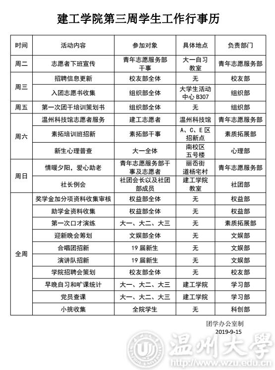 太阳集团tyc4633团委·员工会第三周行事历