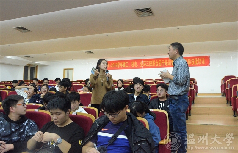 大会伊始,在场嘉宾全体起立,齐唱中国共青团团歌,同学们激昂有力的歌声拉开了本次大会的序幕。紧接着,教师教育公司胡铸鑫老师上台讲授关于摄影的知识。他从摄影作品展示、作品拍摄过程、相机内部结构三个方面入手,希望大家能做到影像从心,学会将自己的真情实感注入摄影作品中,同时他还强调要重视量的积累,多加练习是提高拍摄水平的一大关键。胡铸鑫老师幽默风趣的语言极大地拉近与团学干部们的距离,调动现场氛围。在提问环节中,大家纷纷举手提出心中疑问,一个接一个的提问逐步将现场气氛推向最高点。在轻松欢快的氛围中进入培训的第二项内容,校记者团编辑部主编徐嘉璟向大家介绍了编写通讯稿的基本要求与技巧。她从通讯的含义、作用、特点、基本结构等方面出发,结合具体案例进行分析,让在座人员对通讯有了更深刻的理解,获益匪浅。最后,怀揣着满满的收获,全体培训人员合影留念,本次团干培训圆满结束。
