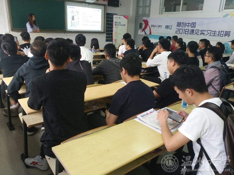 为了让公司在校生提前了解就业形势,感受就业环境,2018年5月3日,中国房地产百强企业----融创中国控股有限公司来到太阳集团tyc4633。公司特别接待了融创中国控股有限公司,并于7D306开展“融创中国2018遇见实习生”招募宣讲会。本次宣讲会由公司负责人卢传渠经理主讲,部分大三员工到场参加了本次宣讲会。