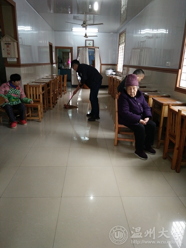 早上在两位青协成员的带领下,志愿者们来到了丽岙茶堂,在照料负责人和青协成员的安排下,志愿者们和青协成员首先为老人们擦吃饭的桌子,大家齐心协力,在轻松愉悦的环境下完成了任务。之后,青协成员和志愿者们去旁边的河塘帮老人洗衣服和洗被单。尽管这是一份很重的工作,但大家还是非常卖力,大家都互相交流、聊天,时间过去了,大家也将衣服和被单洗完了。所有人都休息了一会儿,然后去老人们的院子里打扫树叶,即使刚刚下过雨,但每个人都尽全力去扫。天公不作美,雨又开始下了,大家只能作罢。吃饭时间的时候,负责人端上了一桌的好菜,并且不断感谢和夸奖我们。到了下午,雨停了,我们就把剩下的树叶扫完了。最后,我们去了一个老人的家里,帮助他搞卫生。到了最后要走的时候,负责人还一直感谢我们,我们就这样回到了公司。