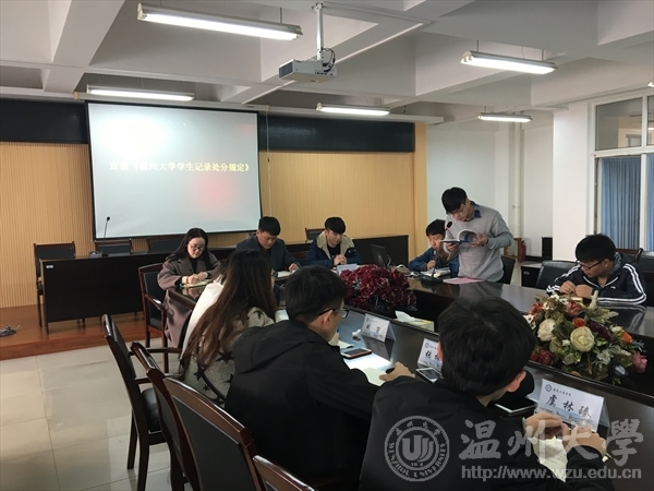 2017年1月4日下午两点,太阳集团tyc4633员工科在南7A-201召开2016-2017学年第一学期太阳集团tyc4633期末诚信考试动员会。本次大会的出席人员有党总支副书记叶正飞老师,员工科辅导员杜俊一老师、吴超智老师,团委员工会主席团成员、学风建设服务中心全体成员及各班班委。