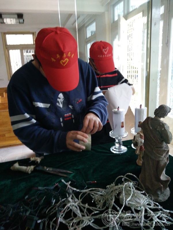 在约定的时间,三名志愿者准时聚集在太阳集团南门,经过长时间的车程,最终在八点四十分到达了目的地。与福利院陈阿姨的交流下,志愿者们明确了自己的任务,工作便井然有序的进行着。首先,志愿者们带着搓斗、扫帚等工具,对院子里的卫生逐一进行清理。志愿者们有的清理落叶,有的对清理周围的垃圾。同时志愿者们与阿姨亲切的交谈,陈阿姨给志愿者拿来一些水果与饼干,志愿者受到了阿姨的热情款待,然而志愿者们向阿姨道了声谢,并没有接受,在不断地劝说声中,阿姨只好作罢。短暂的休息之后,阿姨带着志愿者们布置房屋,在平安夜与圣诞节到来之际,带来一个温暖温馨的节日,为爷爷奶奶带来节日的气氛。阿姨买来了布置房屋需要的用品,志愿者们搬来梯子张贴圣诞老人,装扮圣诞树,贴窗贴等。