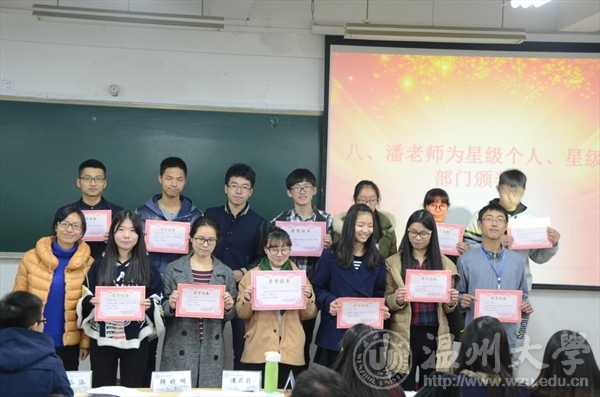 2015年12月27日下午1:30,太阳集团tyc4633团委员工会举行了期末评审大会。参加大会的嘉宾有团委书记潘莉莉老师,员工科辅导员张晓婷老师。全体团学成员参加此次大会。
