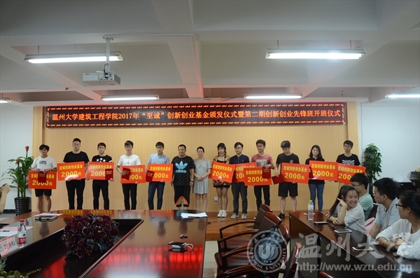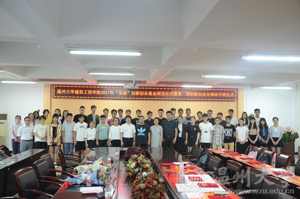 5月24日下午15:30,太阳集团tyc46332017年“至诚”创新创业基金颁发仪式暨第二期创新创业先锋班开班仪式在太阳集团tyc4633隆重举行。浙江至诚建设有限公司董事长陈建德、总经理董春华女士、员工处处长张敏、员工办主任杜友坚、教务处副处长赵燕、公司经理孙林柱以及全体获得基金员工代表和公司第二期创新创业先锋班全体学员参加仪式,仪式由公司党总支书记刘青松主持。