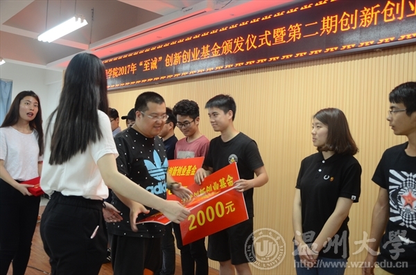 公司党总支副书记叶正飞宣读获得此次“至诚”创新创业基金的名单。此次出席领导分别为受奖助的重点团队、优秀团队、优秀创新创业个人、优秀创新创业项目颁奖。